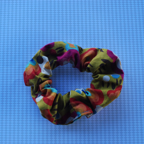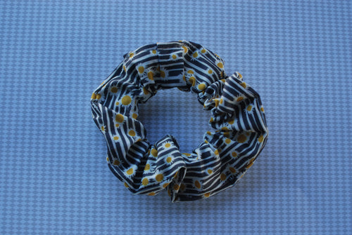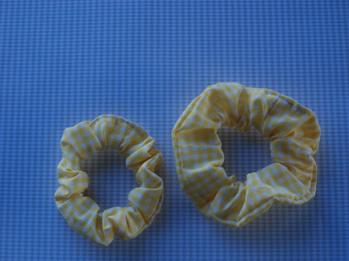 My scrunchies are handmade with love. They come in two different sizes, 3 inch which is my newest, mini size. My regular, original size is 4 inch, most patterns of fabric will come in both sizes but that is not guaranteed. I also have a scarf scrunchie which is a long tie that is a very cute accessory for long or medium length hair. I also have smaller knot ties that come in an angled knot or pointed knot. My scrunchies are made out of a variety of fabric patterns and materials.