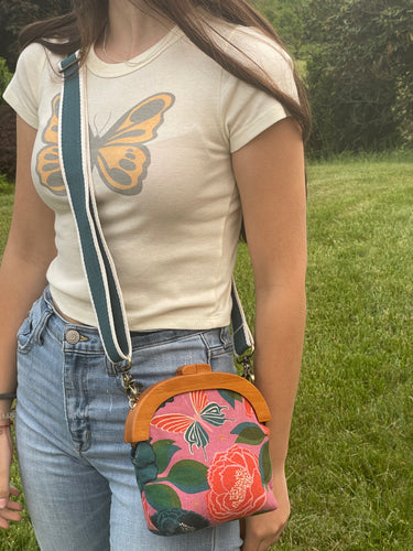 Wooden Handle floral/butterfly clutch