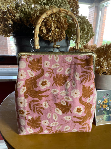 Florida Alligator Fabric with Bamboo handle clutch