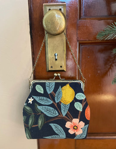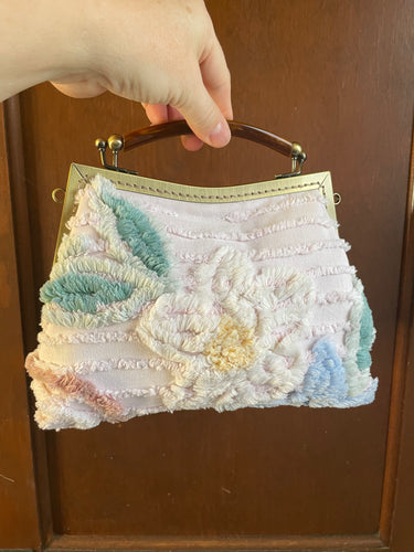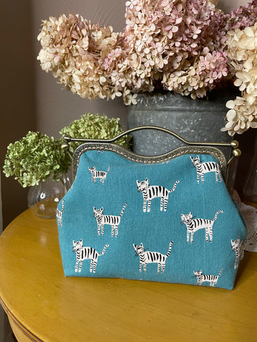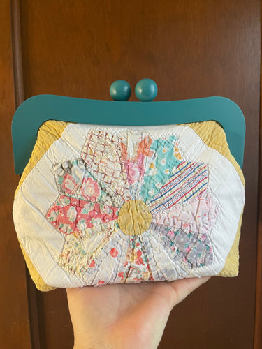 Blue Wooden Frame Vintage Quilt Clutch Bag